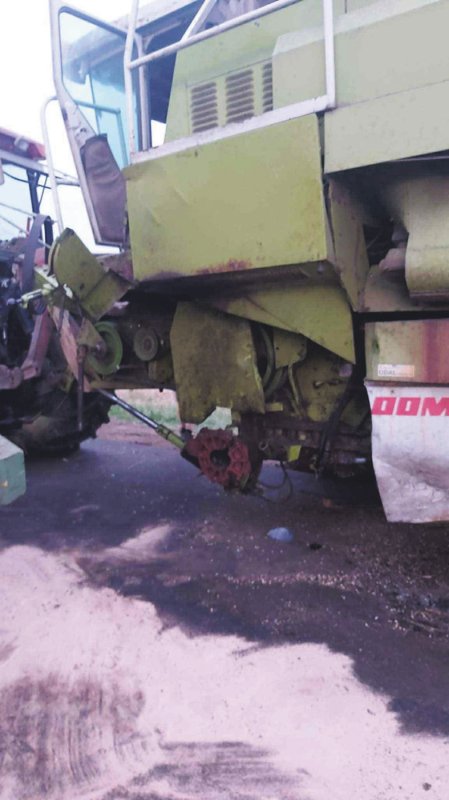 Tuo metu iš priekio jam pasirodė kombainas. Siaurame kelyje pažeidėjas nesugebėjo prasilenkti ir rėžėsi į priešpriešiais važiuojančio kombaino priekinį šoną ir nuskrido nuo kelio. Į visas puses pažiro detalės.
