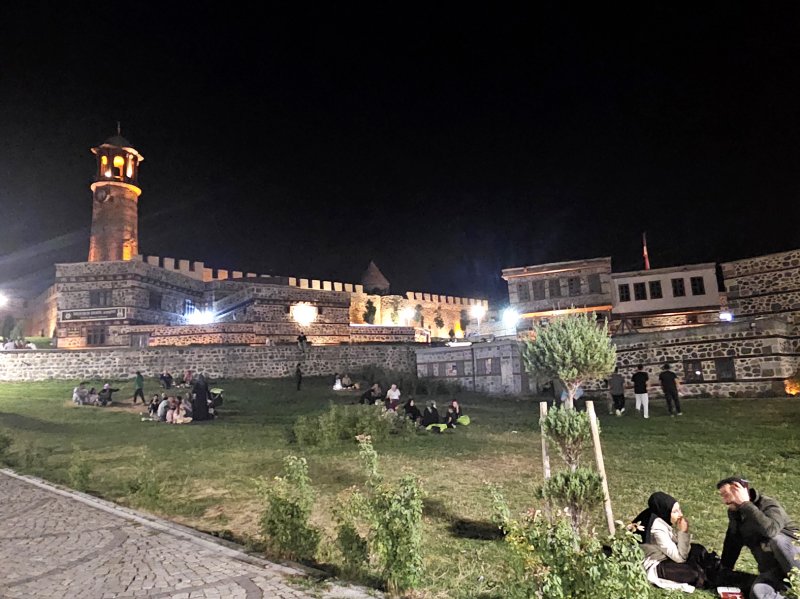 Keturios valandos autobusu labiau į rytus ir atsiduriame Erzurume. Jis panašaus dydžio miestas, tačiau pačioje senamiesčio širdyje stūkso įspūdingas senovinių pilių kompleksas. Temstant, kai 35 laipsnių karštis ima trauktis, į gatves pasipila žmonės. Apšviestos pilys atrodo įspūdingai.