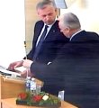 1. R.Godeliauskas (kairėje) nesitraukė iš tribūnos ir, užuot užleidęs vietą, G.Girštauto teiravosi, ko šis nori. Stop kadras iš tarybos posėdžio
