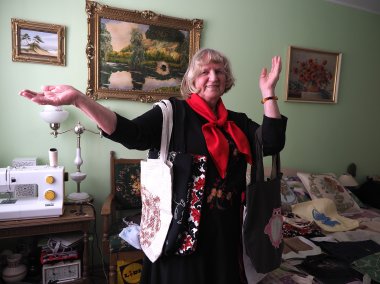 Daugiau nei dešimtmetį Panevėžyje gyvenanti Genovaitė Kačkienė susirado malonią veiklą – siuva medžiaginius maišelius.