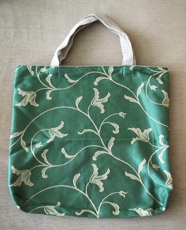 Moteris rodo ir kitokių maišelių, pavyzdžiui, su Heloviną primenančiais ornamentais, siūtų iš margo baldinio audinio atraižų ar medžiagos japoniškais motyvais.