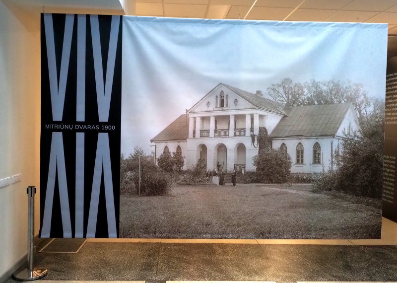 Abipus simbolinės upės krantų stūkso Mitriūnų dvaras: ir didingas senasis, su baltom kolonom, ir dabartinis – tai, kas iš jo likę. O likę vien storų raudono mūro sienų fragmentai. Daugelis eksponatų taip ir sugretinti: kas buvo ir kas liko.
