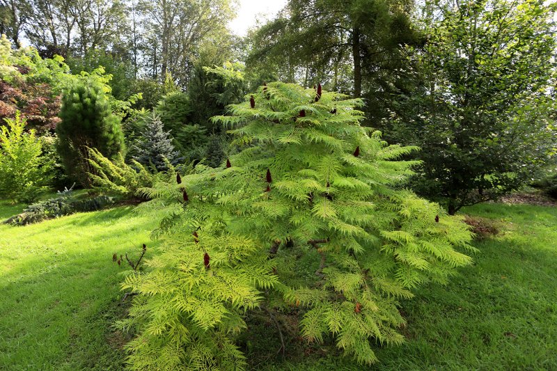 Juodalksnis, kurio lapai tarsi spygliai. Baltalksnis, margalapis skirpstas, kamštinis skirpstas, klevas, kuris ūgtelėjęs dėl ypatingų lapų atrodys visai baltas, krūminis smulkiažiedis kaštonas, žagrenio rūšis, vadinama geiša, veimutinė pušis ir begalė vis kitokių jos giminaičių, besiskiriančių spalva, spyglių ilgiu ir kankorėžių dydžiu.
