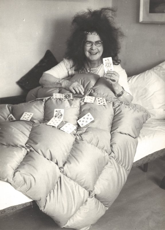 Performansu galima laikyti ir fotografiją, kurioje V.Šleivytė palindusi po antklode – su kortomis ir susivėlusi.