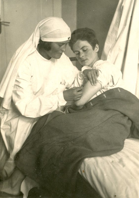 V.Šleivytė fotografavo ne tik kitus pacientus, bet ir save sergančią. Vienoje iš daugybės nuotraukų užfiksuota gan intymi scena, kaip seselė jai leidžia vaistus.
