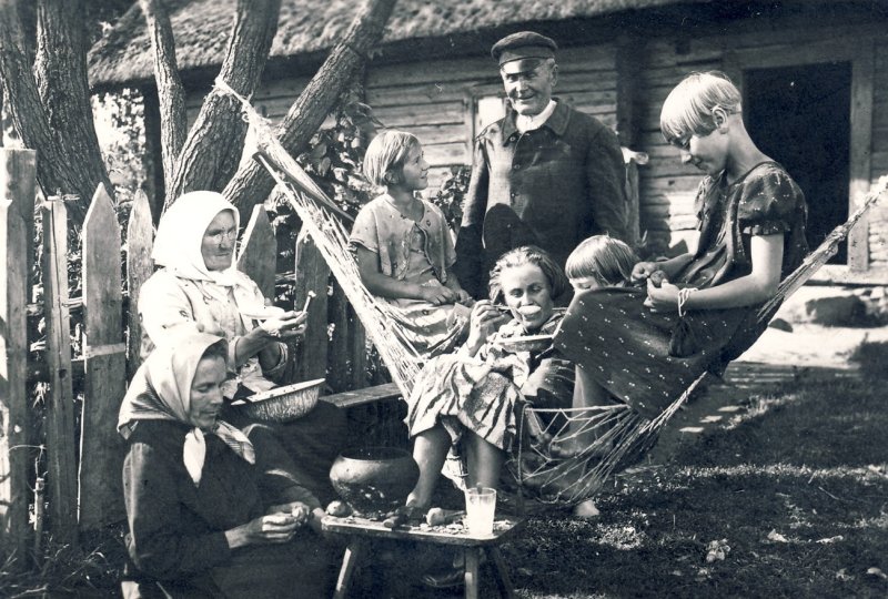 15. Surežisavusi sceną su šeimos nariais ir nustačiusi fotoaparatą, V.Šleivytė (centre) ir pati įbėgdavo į kadrą.