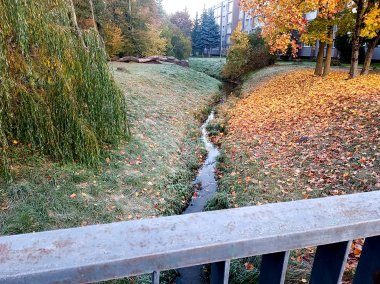 Toje vietoje nėra gilu. Upelis primena labiau griovį, pakrantė apaugusi žole ir krūmais.