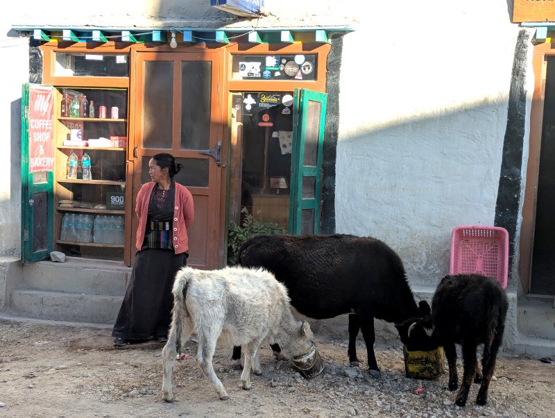 Vietos gyventojai augina karves, jakus, avis, ožkas, matėme ir vištų. Nors derlingesnės žemės lopinėlių čia reikia paieškoti, bet grūdinių kultūrų užsiaugina, tad badu tikrai nemiršta. Ir maistas čia natūralus, nes trąšos – gyvulių mėšlas. Lietuviški piemenėlių laikai pas mus jau pamiršti, o ten, žiūrėk, visai dar pyplys bandą gena.