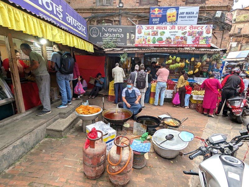 1. Sostinėje Katmandu, senamiesčio aikštelėje, verda gyvenimas. Turistai mielai perka ir ragauja ką tik riebaluose ant dujų krosnelių iškeptus gardumynus.