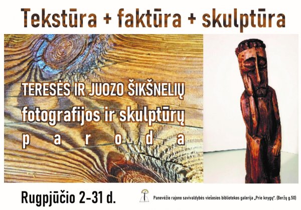 Panevėžio rajono savivaldybės viešojoje bibliotekoje (Beržų g. 50) eksponuojama klaipėdiečių Teresės ir Juozo Šikšnelių paroda „Tekstūra + faktūra + skulptūra“.