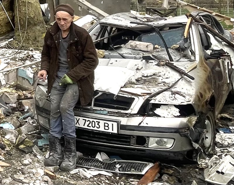 „Buvo pusė dešimtos vakaro, kartu su penkiolikmečiu sūnumi ir keturiolikmete dukra virtuvėje virėme arbatą, tepėme sumuštinius vakarienei ir laukėme ateinančios Irinos. Ji žiūrėjo mėgstamą filmą ir tuoj tuoj turėjo pasirodyti, bet tą akimirką jos kambaryje sprogo dronas. Mus tik apibraižė stiklų šukės, o Iriną užklojo storas cemento nuolaužų sluoksnis. Su pagalbon atbėgusiu kaimynu puolėm atkasti, bet žmona jau buvo mirusi. Sunkiai abu dirbome, pasistatėm naują namą, o dabar Irina negyva, namo nebėra. Kur reikės su vaikais dėtis, nežinau. Man šokas, esu sutrikęs, esu piktas ant Maskvos ir viso pasaulio, kad nesugeba sustabdyti šio karo“, – kalbėjo Viačeslavas.