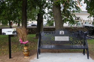 Kunigo sesers anūkė Odetė Abromavičiūtė papasakojo, kaip gimė idėja pastatyti suoliuką. Susitikime su Pumpėnų bendruomenės pirmininku Arminu Vareika buvo parodyta nuotrauka, kurioje kunigas sėdi ir skaito knygą.