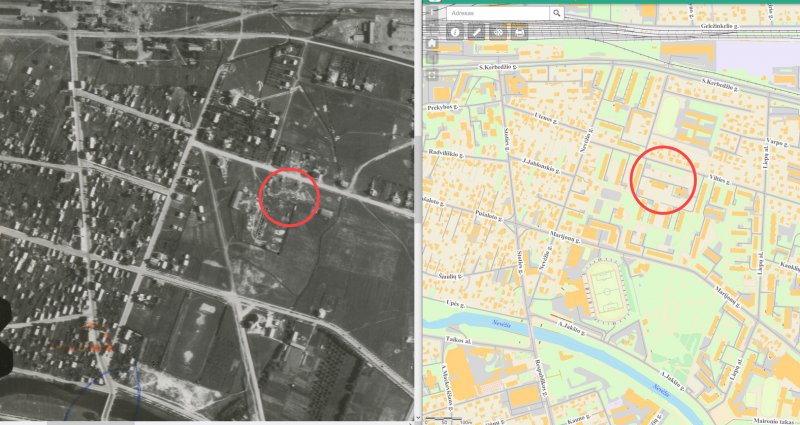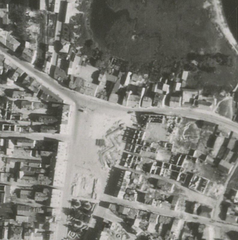 2. Slėptuvė šalia dabartinių Bendruomenių rūmų. Panevėžys, 1944 m. aerofotografija.