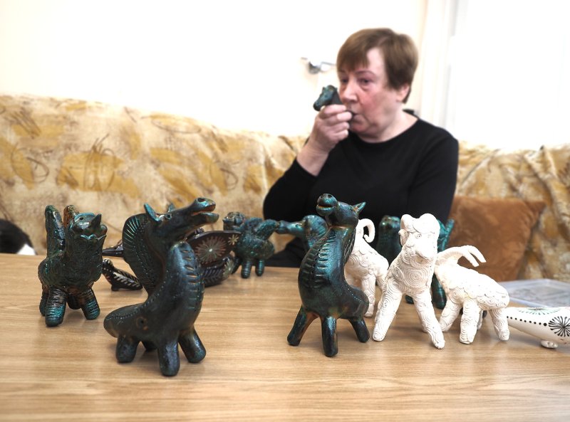 Mokinius ji moko keramikos darbų, tad ir namuose turi molinių švilpynių. Linksmieji jūros arkliukai, o gal žirgeliai, spindi žalia glazūra. Kiti darbai – iš nespalvoto balto arba raudono molio.