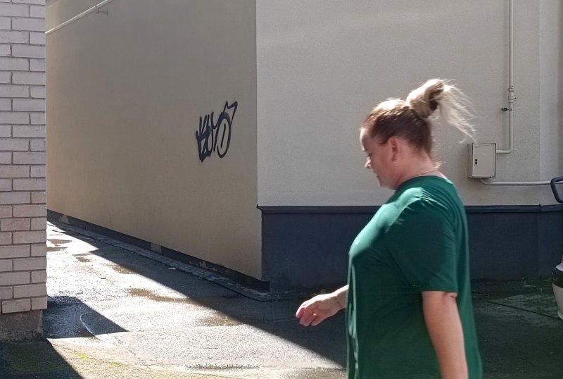 Tiesiog tunelyje tarp namų, ant neseniai renovuoto namo sienos, juodais dažais buvo išpurkšta bjauri teplionė.