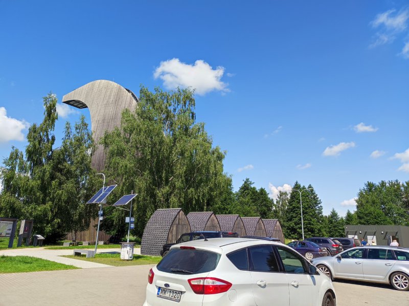 Sustojame mašinų aikštelėje, dairomės ir stebimės, kad taip mažai lankytojų. Ir, tarsi turistai būtų mūsų žodžius išgirdę, vienas paskui kitą atrieda keli automobiliai. Smalsuoliai – mūsų braliukai, kalba latviškai.