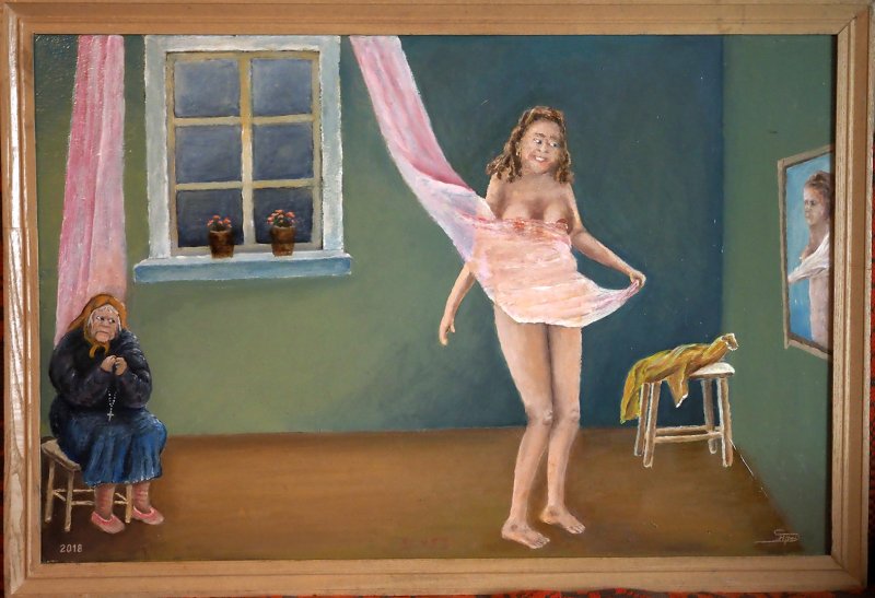 Juos mums rodo šiek tiek abejodamas, ar verta, mat vienas svečias iš sostinės tokio stiliaus jo kūrinius supeikė, patarė geriau žmonių nepiešti, esą gamta gražiau.