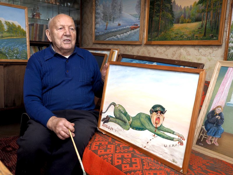 „Čia gi Hitleris-Putleris, nutapiau tą dieną, kai Rusija užpuolė Ukrainą“, – paaiškina.