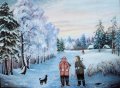 „Čia žiemos vaizdas per atodrėkį, ten motina su savo brangiausiu turtu – vaikeliu, žvejai prie Bajorų ežero, stebisi, kad draugas ištraukė didelę žuvį“, – pasakoja apie kiekvieną kūrinio siužetą.