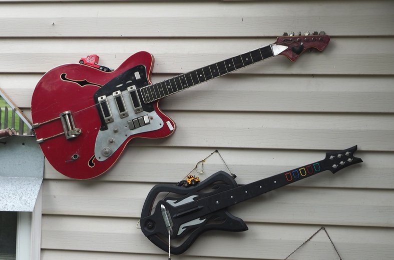 1. Senos elektrinės gitaros panaudotos namui puošti.