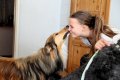 Su Mūniu reikia ir apsikabinti – šeimininkė atsitupia, šuo uždeda letenas ant pečių ir taip ramiai šiek tiek pabūna.