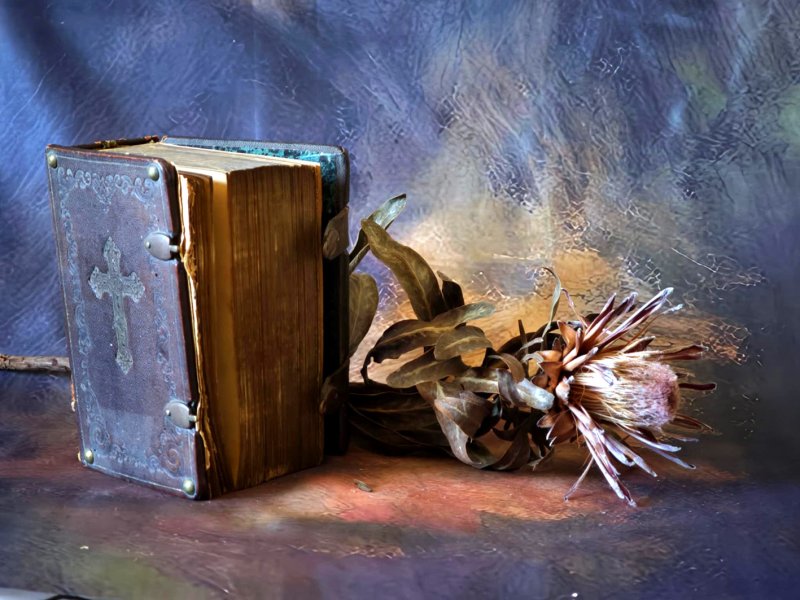 3. Fotomenininkas ir fotografijos būrelio vadovas V.Bručas natiurmortui panaudojo seną knygą ir džiovintus augalus.