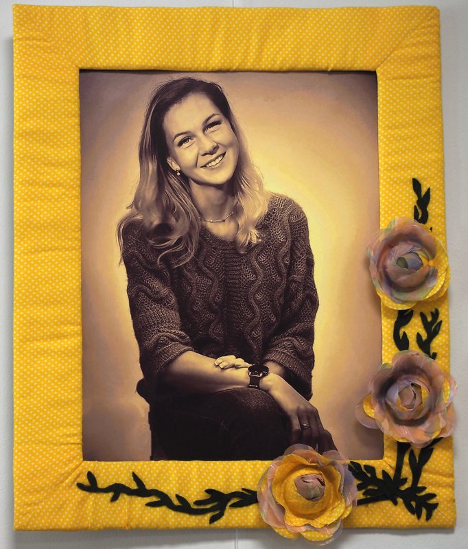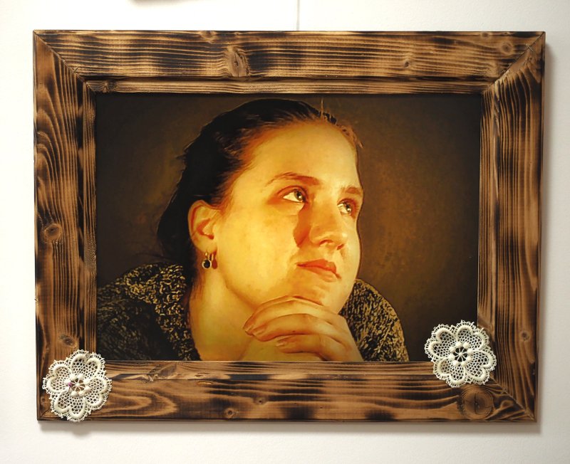 Moteris rodo jos darytus portretus, jiems ir rėmus pati sukūrė. Kiekvienos fotografijos rėmai vis kitokie.