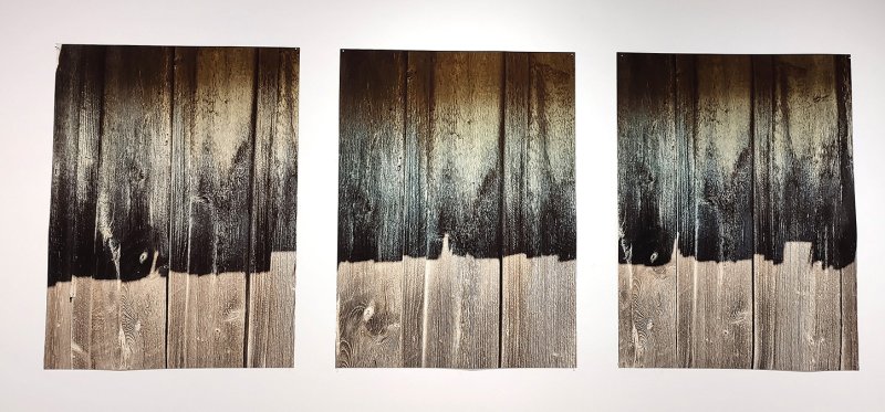 5. Triptikas iš saulės apšviestų ir šešėlyje skendinčių sienos lentų tarsi sako, koks puikus kūrėjas yra pati gamta, menininkui tik belieka tai pastebėti.
