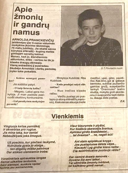 „Kai mokiausi Panevėžyje, siautė „tulpiniai“. Dabar pagalvoju, kiek pavojaus buvo mieste, kaip reikėjo saugiai pareiti namo, kad niekas tavęs neužkabintų. Netoli buvo Tulpių mikrorajonas, kur gyveno kai kurie nusikaltėliai. Būtent tokioje mokykloje galėjau išlikti žmogumi, nepasirinkti gatvės“, – daro išvadas pašnekovas.