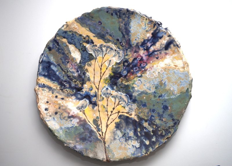Menininkė rodo dekoratyvinius pano, kurių puošybai panaudojo tikrus augalus, į vieną įspaudė kelis ginkmedžio lapus, kitame iš gyvų klevo lapų pavaizdavo vėjo gūsį.