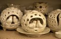 Senbuvės spiečiasi prie stalo, nes ten išdėlioti jau išdegti jų darbeliai. Visos stebisi, kaip smarkiai ugnis pakeitė glazūrų spalvą.