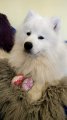 Vienas kiaušinis nuo Velykų stalo atiteko ir šeimos augintiniui, samojiedų veislės baltavilniam Setui. Moteris su juo nuolat važinėja į parodas, šuo jau gavęs Lietuvos čempiono titulą.