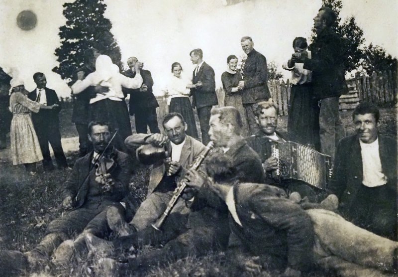 1. Šeimos šventės akimirka su alučiu apie 1930 metus Biržų apskrityje. Tiksli vietovė ir fotografas nežinomi. Biržų muziejaus „Sėla“ nuotr.