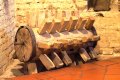 Palei kitą salės sieną išrikiuoti jau alaus gamybai naudojami rakandai: kubilai, trikojis, kaušai, statinės.
