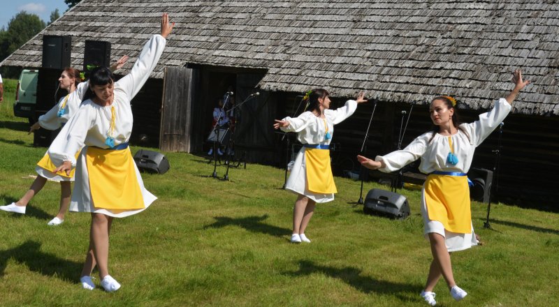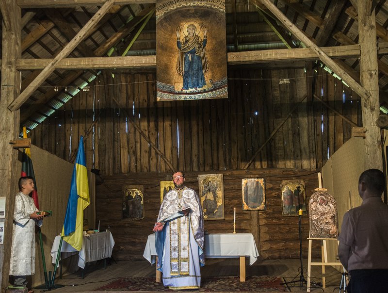Beveik tuo pačiu metu šventė prasidėjo Arklio muziejaus Striukų sodybos klojime šv. Mišiomis ir troboje Anykščių krašto medaus gastronomine degustacija. Šį kartą ukrainiečių kalba Vilniaus Švč. Mergelės Marijos Apreiškimo parapijos rektoriaus teol. dr. kun. Georgijaus Rojaus ir dar kelių kunigų aukojamose šv. Mišiose dalyvavo mažokai ukrainiečių, nors jų, pasak jų globėjo Virginijaus Strolios, mūsų rajone gyvena apie tris šimtus. „Apie 80 proc. ukrainiečių moterų dirba Anykščių šiltnamiuose, o, kiek žinau, šiandien joms darbo diena“, - pastebėjo Ukrainos garbės ambasadorius Anykščių krašte V. Strolia.