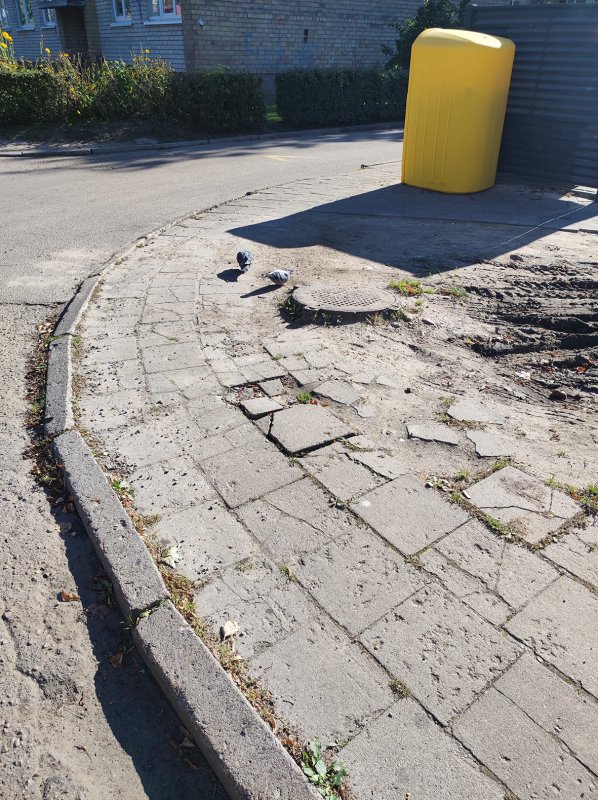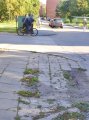 Korespondentės paklausti, ar prisimena, kada mikrorajono keliukai ir šaligatviai buvo tvarkomi, jie tik gūžteli pečiais ir purto galvas. Išties, pasižvalgius į akis krenta šaligatviai, kuriuose plytelių trūksta kaip šachmatų lentoje. Kitos iškilotos medžių šaknų, ištrupėjusios, apaugusios žolėmis. Gatvės lopytos perlopytos.
