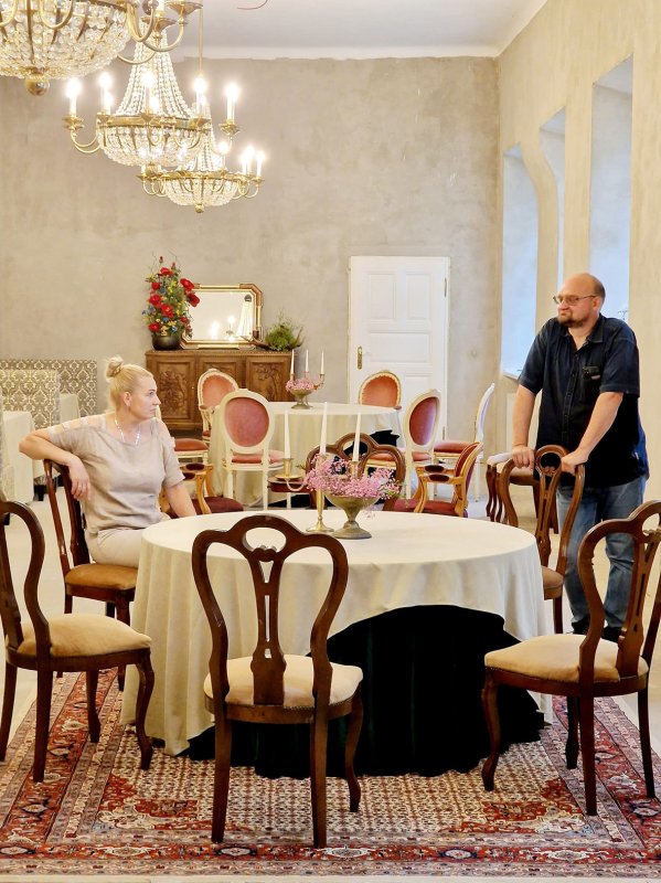 Kai Rokiškio teatre prasidėjo nesusipratimai, išgirdau priekaištų, kodėl aktoriams teikiu nepagrįstų vilčių, kad spektaklį pastatysime. Tariausi su aktoriais, klausiau, ką darom? Visi nutarė: pabaigiam. Teatre mažai berepetavom, daugiau mano bute, Bajoruose, į Salų dvarą nusikraustėm prieš pat premjerą. Repetuoti tuos 30 kilometrų vykdavom keliom mašinom.