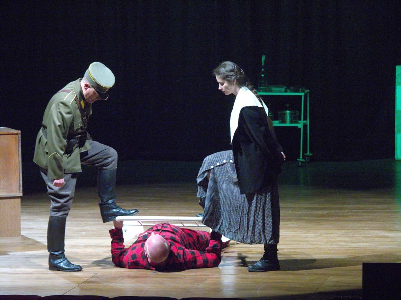 Išskyrus partizanus, atrodo, kad visi personažai išprotėję. Jie kaip psichikos ligoniai kalba lozungais, visokias nesąmones, barasi, tad viską ir perkėliau į ligoninę. Ten pat įkurdinom ir bunkerį – po dideliu stalu.