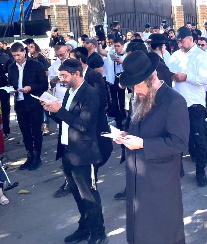 Dar labiau toks jausmas apėmė lygiai vidurdienį, kai per garsiakalbius ėmė sklisti maldos žodžiai, o keliasdešimt tūkstančių chasidų gatvėse bei namų balkonuose juos kartojo. Maldos tęsėsi pusvalandį ir užsibaigė džiaugsmingu šūkiu, po kurio iš kai kurių garsiakalbių ėmė sklisti muzika, o dalis maldininkų pradėjo energingai šokti sukdamiesi ratu. Po valandos minia po truputį ėmė skirstytis, o tikrosios linksmybės turėjo prasidėti vakare – danguje pasirodžius pirmajai žvaigždei.