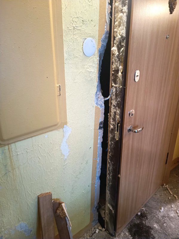 Su visa stakta išpjautos šarvuotosios durys paliktos atremtos į sieną. D.Krasausko nuotr.
