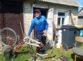 Bet ne. Prie namo durų stovi į šiukšlių konteinerius atremti du dviračiai. Vienas jų – be pedalo.
