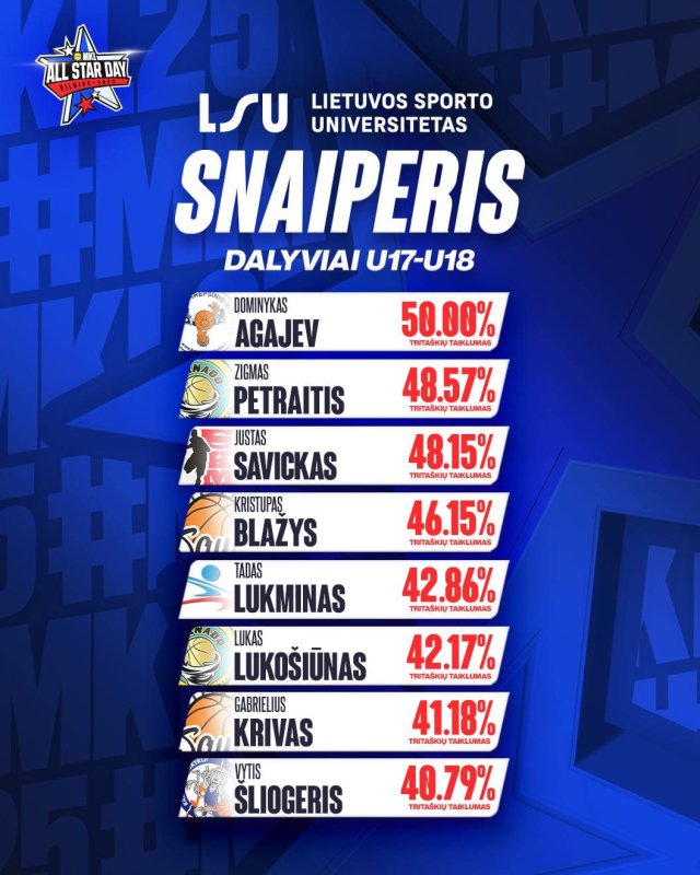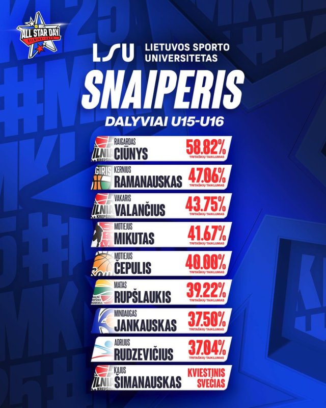 Be pagrindinių rungtynių, Panevėžio sporto centro ugdytiniai taip pat dalyvaus ir „Snaiperio“ turnyre, kuriame geriausi lygos metikai varžysis dėl taikliausios rankos titulo. 15–16 metų krepšininkų grupėje varžysis Adrijus Rudzevičius, 17–18 metų grupėje – Tadas Lukminas.