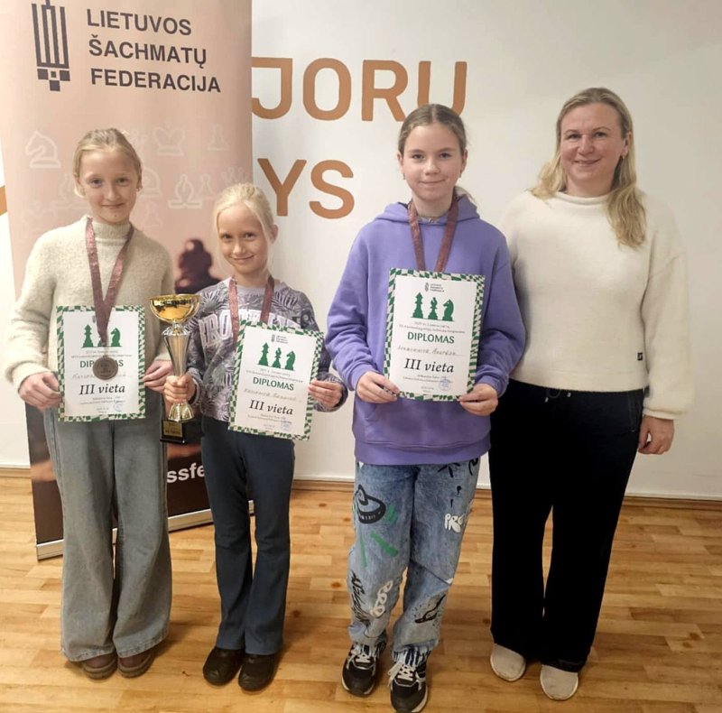 Greitųjų šachmatų čempionate, kuriame dalyvavo 16 vaikinų komandų (po 5 žaidėjus) ir 8 merginų komandos (po 3 žaidėjas), Kamilė Katinaitė pasirodė itin įspūdingai – jaunoji žaidėja surinko net 6,5 taško iš 7 galimų. Austėja Liobikaitė ir Medeinė Katinaitė surinko po 3,5 taško iš 7, taip prisidėdamos prie komandos sėkmės.