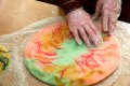 „Išdžiūvusius margučius dar papuošėm sausuoju vėlimo būdu, specialiomis adatomis pribadėme spalvotų taškelių ar lopelių“, – pasakojo tautodailininkė.