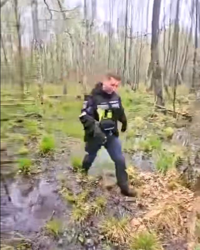 2. Paieškoje dalyvavusiems pareigūnams teko klampoti po pelkėtą mišką.