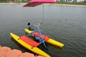 Vėjuotą dieną Panevėžyje, „Ekrano“ mariose, vėjo smūgių neatlaikė vandenlenčių parke prie pontoninės prieplaukos prikabintas vandens dviratis.