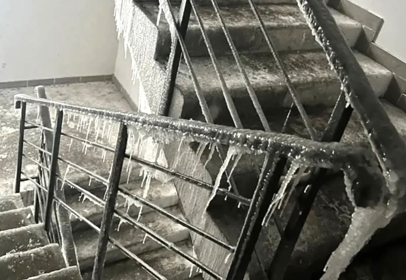6. Daugelyje namų Kyjive temperatūra nukrito žemiau nulio, koridoriuose kabo varvekliai.