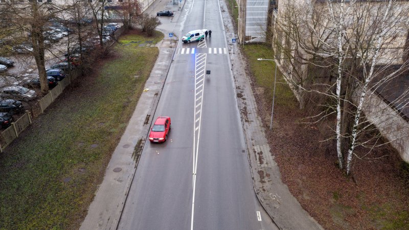 Į padangę pakelta skraidykle pareigūnai apžiūrėjo avarijos vietą, todėl prieš tai šioje judrioje gatvėje pusvalandžiui uždarė eismą.