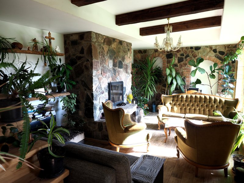 Nagingas vyras net ir baldus pats padarė, židinį sumūrijo, žmona sienas dekoravo.