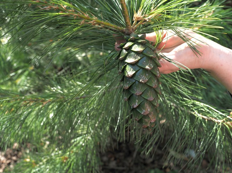 4. Geltonosios pušies spygliai net 30 centimetrų, o kankorėžiai – dviejų delnų ilgio.